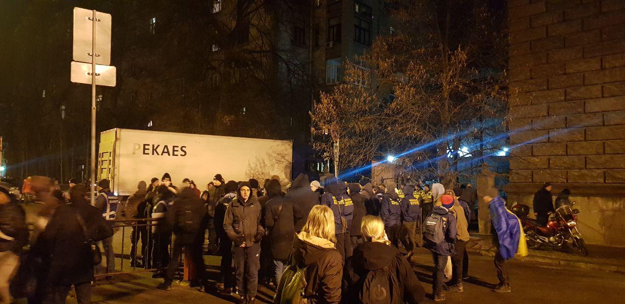 Многие участники протеста уже покинули Банковую. Правительственный квартал по-прежнему охраняет несколько сотен правоохранителей: бойцы спецподразделения Национальной полиции, военнослужащие Национальной гвардии, сотрудники Госслужбы Украины по ЧС. Они не препятствуют проведению акции.
