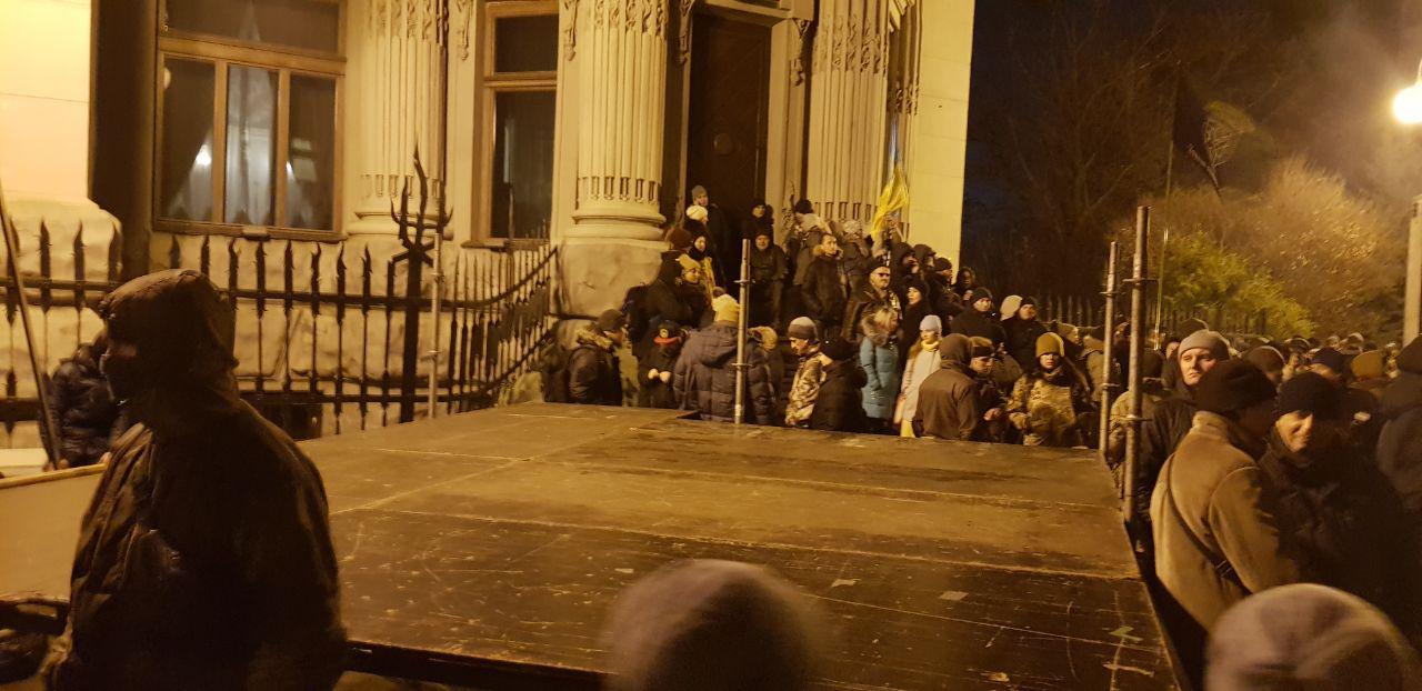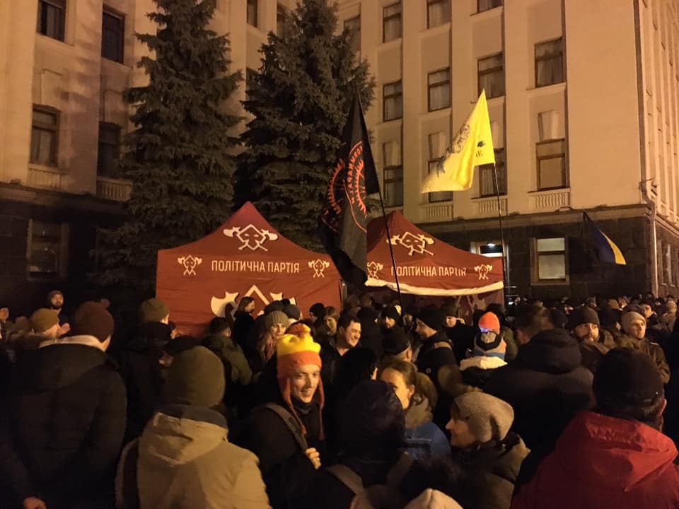 19:36  Около "Дома с химерами" начали устанавливать палатки, в это время под ОП толпа кричит "Богдана в отставку". Видео "Страны".