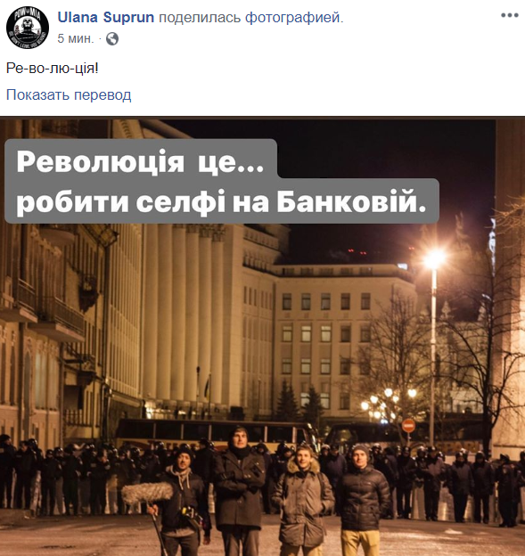 19:20  Ульяна Супрун делает вдохновляющие перепосты и пишет по слогам: "Ре-во-лю-ция!"