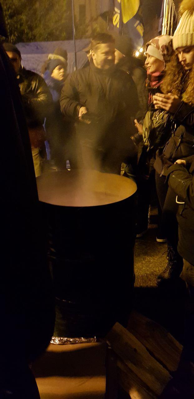 На Банковой участники Порох-майдана установили бочки, чтобы греться. Фото