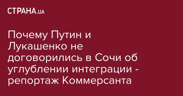 Почему Путин и Лукашенко не договорились в Сочи об углублении интеграции - репортаж Коммерсанта