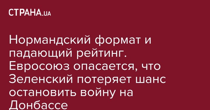 Нормандский формат и падающий рейтинг. Евросоюз опасается, что Зеленский потеряет шанс остановить войну на Донбассе