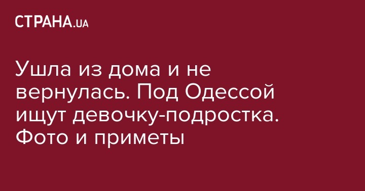 Ушла из дома и не вернулась. Под Одессой ищут девочку-подростка. Фото и приметы