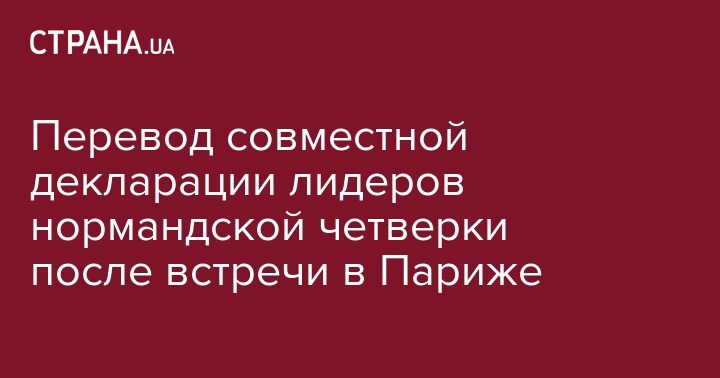 Перевод совместной декларации лидеров нормандской четверки после встречи в Париже