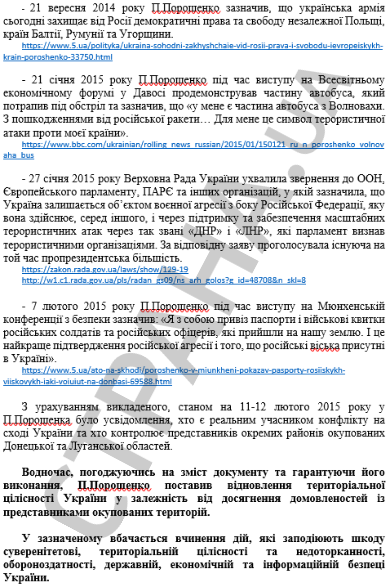 Таким образом Портнов трактует согласование Порошенко Минских договоренностей как госизмену в пользу России (статья 111 УК Украины).