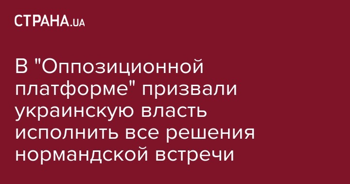 В "Оппозиционной платформе" призвали украинскую власть исполнить все решения нормандской встречи