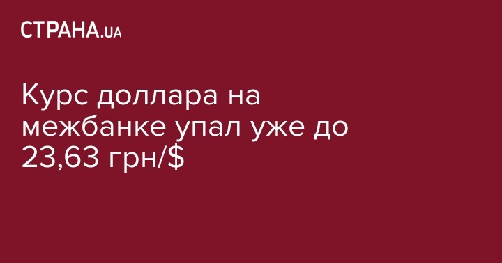 Курс гривни на межбанковском валютном рынке во вторник укрепился на 9 копеек до 23,625 грн/$1 с 23,715 грн/$1 в предыдущий рабочий день. Об этом сообщили агентству Интерфакс-Украина дилеры коммерческих банков.