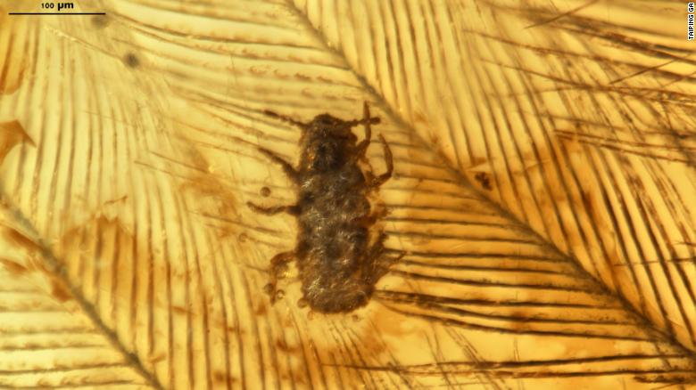 Ученые нашли в янтаре древних вшей, которые питались еще перьями динозавров. Фото