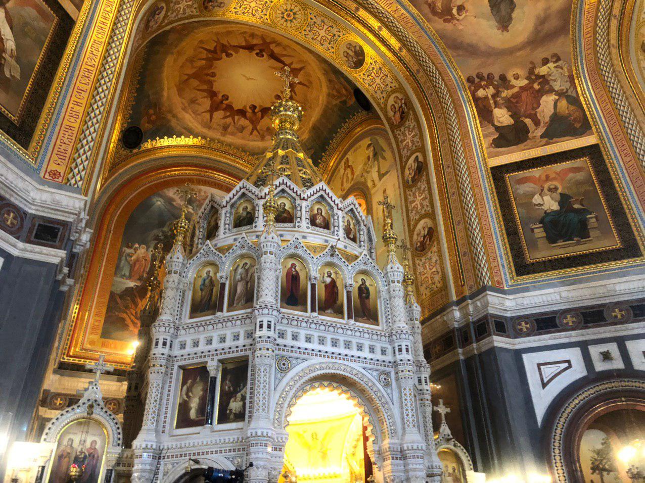 Церемония проходила в главном соборе России - Храме Христа Спасителя, который возвели при правлении Лужкова по его инициативе. Прощание началась в 7 утра по московскому времени и продолжится до 14:00. Столь раннее время объясняют тем, чтобы москвичи успели заехать в храм до начала работы.
