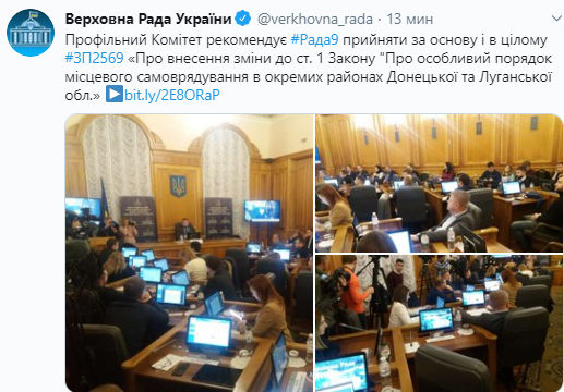 После этого в "Слуге народа" зарегистрировали в Раде проект изменений к первой статье действующего закона. В ней фигурировала дата окончания его действия  - 31 декабря 2019 года.В принципе, это единственные изменения в законе об особом статусе Донбасса.