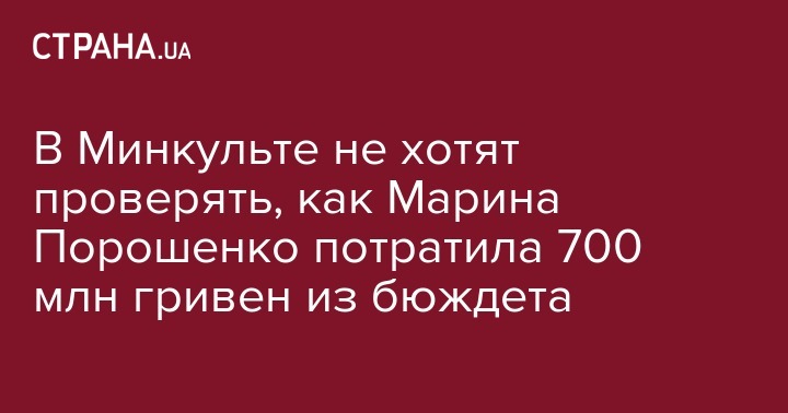 В Минкульте не хотят проверять, как Марина Порошенко потратила 700 млн гривен из бюждета