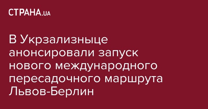 В Укрзализныце анонсировали запуск нового международного пересадочного маршрута Львов-Берлин