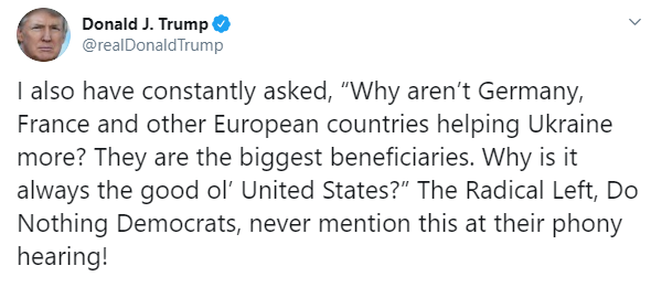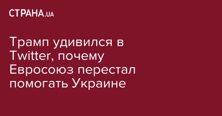 Президент США Дональд Трамп высказал удивление по поводу того, что европейские страны перестали оказывать помощь Украине. От этом он написал в своем микроблоге Тwitter в четверг.