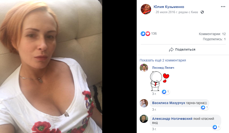 Известно, что сожитель Юлии Кузьменко - атошник Петр Киян по прозвищу "Электрик". У него есть совместные фото с Кузьменко в Facebook. В полиции считают, что он участвовал в подрыве ЛЭП в Херсонской области.