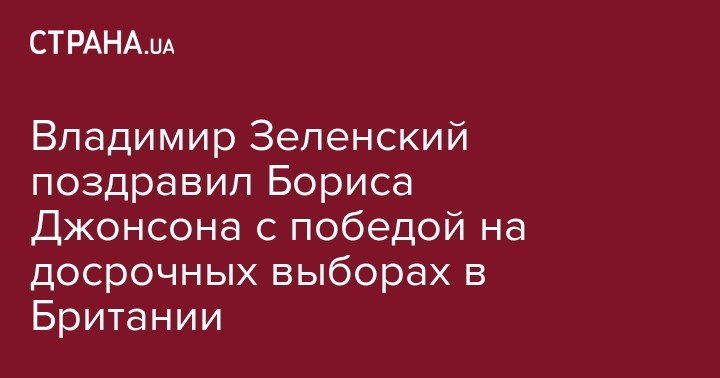 Президент Украины Владимир Зеленский поздравил премьер-министра Британии Бориса Джонсона с победой Консервативной партии на парламентских выборах, где она получила большинство в Палате общин. Об этом глава Украины написал в своем Telegram-канале.