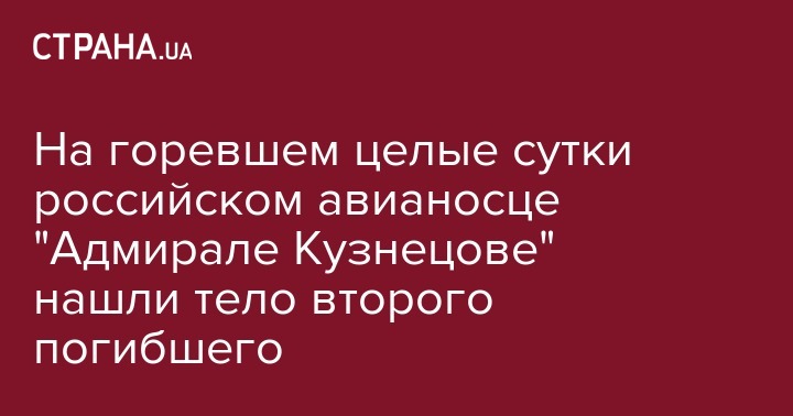 Тело второго погибшего обнаружили спасатели на тяжелом авианесущем крейсере "Адмирал Кузнецов" ВМФ России, на котором в течение суток полыхал пожар. Об этом сообщает "Интерфакс" со ссылкой на источник.