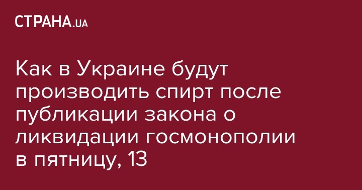 Как в Украине будут производить спирт после публикации закона о ликвидации госмонополии в пятницу, 13