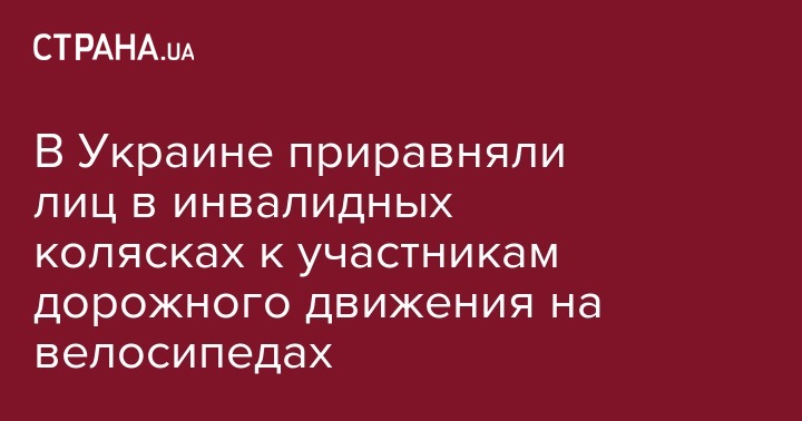 В Украине приравняли лиц в инвалидных колясках к участникам дорожного движения на велосипедах