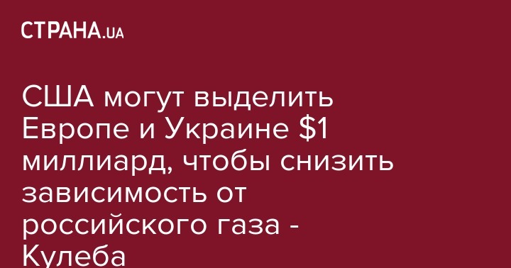 США могут выделить Европе и Украине $1 миллиард, чтобы снизить зависимость от российского газа - Кулеба
