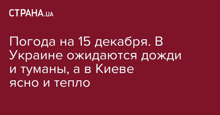 Погода на 15 декабря. В Украине ожидаются дожди и туманы, а в Киеве ясно и тепло