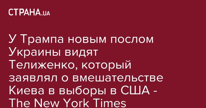 Но ближайшее окружение Трампа считает лучшим вариантом Телиженко и "тихо подталкивает" президента к одобрению его кандидатуры. Украинские чиновники рассказали The New York Times, что официальное заявление об утверждении посла может быть обнародовано в течение недели.