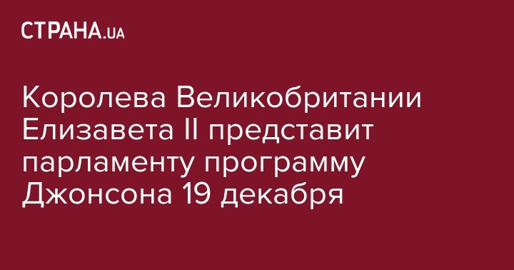Королева Великобритании Елизавета II в четверг, 19 декабря, изложит законодательную повестку дня новоизбранного премьер-министра Бориса Джонсона. В повестке дня нового-старого премьера будет обещание вернуть в парламент законопроект о соглашении о выходе из ЕС к Рождеству. Об этом сообщает Reuters.