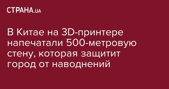 В Китае специалисты компании Winsun на 3D-принтере распечатали 500-метровую стену для защиты от наводнений. Этот крупнейший объект появится в городе Сучжоу. Об этом сообщает 3D Printing Media Network.
