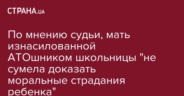 "Считаю компенсацию в размере 3 тыс. гривен достаточной – это почти две минимальные зарплаты, исходя из того, что мать потерпевшей, по мнению суда, не совсем доказала, какие именно моральные страдания понес ее ребенок [несовершеннолетней и не ведущей, к моменту изнасилования, сексуальной жизни] ", – заявил судья райсуда.