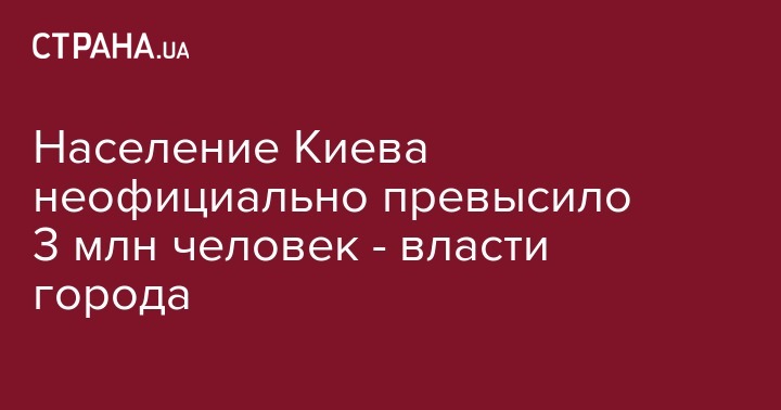 Пока население Украины стремительно сокращается, фактическая численность населения столицы превысила 3 млн человек. Об этом сообщил глава коммунальной организации "Институт генерального плана города Киева" Сергей Броневицкий, передают Українські новини.