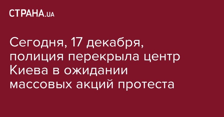 Сегодня, 17 декабря, в Киеве пройдут массовые акции протеста, в том числе и на площади перед зданием Верховной Рады Украины. В связи с этим столичная полиция объявила об ограничении движения в центре города.