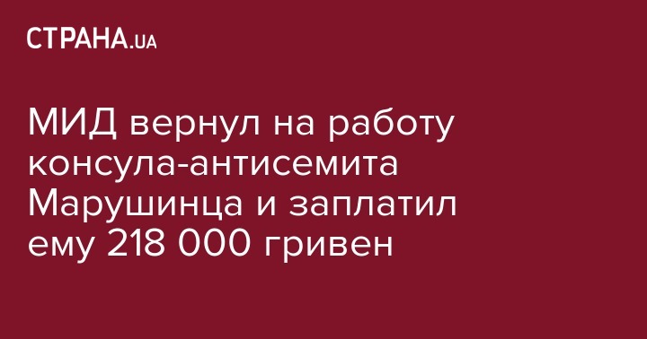 МИД вернул на работу консула-антисемита Марушинца и заплатил ему 218 000 гривен