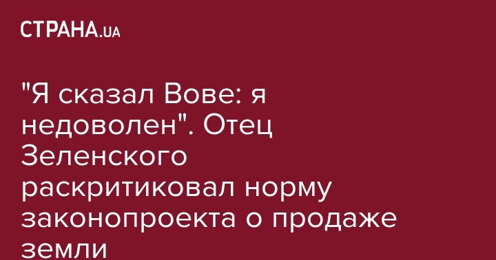 Отец президента Украины Александр Зеленский в интервью "Стране" заявил, что против того, чтобы в одни руки продавались крупные участки земли.