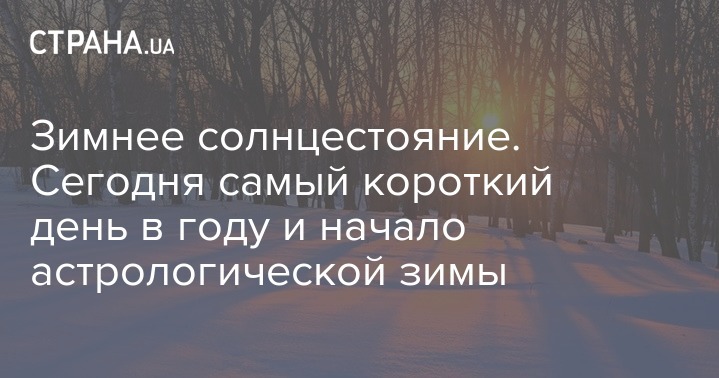 22 декабря - день зимнего солнцестояния. Точное его время в северном полушарии 06:19 по Киеву. Сегодня самый короткий световой день в году, он продлится всего 8 часов, остальные 16 часов на улице будет темно. Затем постепенно светлое время суток будет увеличиваться.