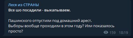 Журналист Олеся Медведева: " Все шо посадили - выкапываем. Пашинского отпустили под домашний арест. Выборы вообще проходили в этом году? Или показалось просто?"