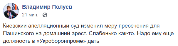 "Слабенько как-то. Надо ему еще должность в "Укроборонпроме" дать", - предлагает журналист Владимир Полуев.