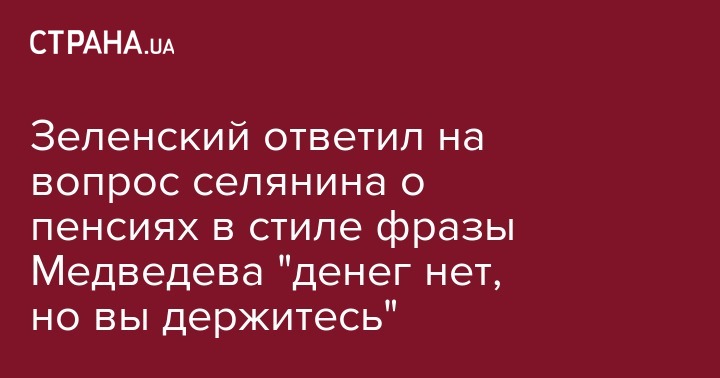 Зеленский ответил на вопрос селянина о пенсиях в стиле фразы Медведева "денег нет, но вы держитесь"