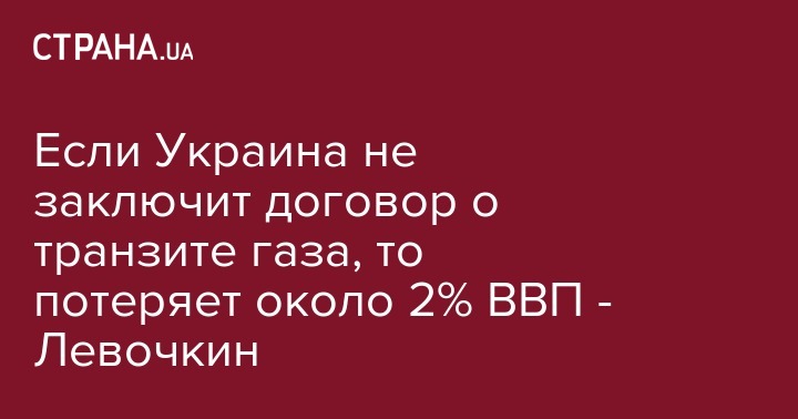 Если Украина не заключит договор о транзите газа, то потеряет около 2% ВВП - Левочкин