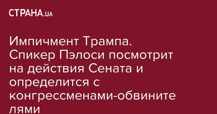 Она заявила, что пока не готова назначить конгрессменов-обвинителей на рассмотрение процесса импичмента  в Сенате Конгресса. Об этом сообщает Gazetа со ссылкой на РИА Новости.