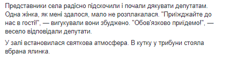 "И вот... Почти единогласно депутаты проголосовали за переименование! Представители села радостно подскочили и начали благодарить депутатов. Одна женщина, как мне показалось, чуть не расплакалась. "Приезжайте к нам в гости!" - восклицали они возбужденно. "Обязательно приедем!", - весело отвечали депутаты", - написал Дубилет.