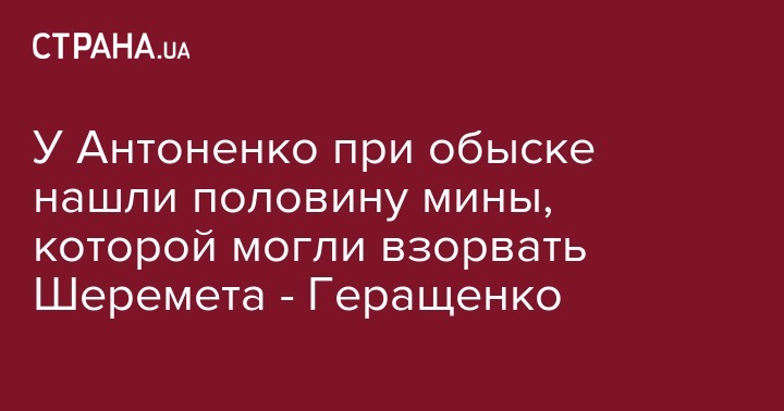 "За некоторое время до обыска Антоненко позвонил своему товарищу и попросил его вынести какую-то "зеленую х-ню". Немедленно оперативные сотрудники и следователи провели обыски в возможных местах пребывания этого предмета. Этим предметом оказалась половина настоящей боевой мины МОН-50", – рассказал Геращенко журналистам в четверг в Киеве.