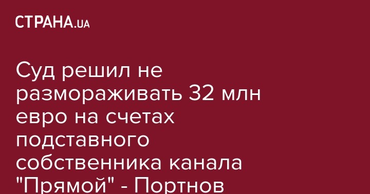 Киевский апелляционный суд оставил в силе решение об аресте 32 миллионов евро, замороженных в Люксембурге на счетах подставного собственника телеканала Прямой Владимира Макеенко. Об этом в своем телеграм-канале сообщил известный юрист Андрей Портнов.
