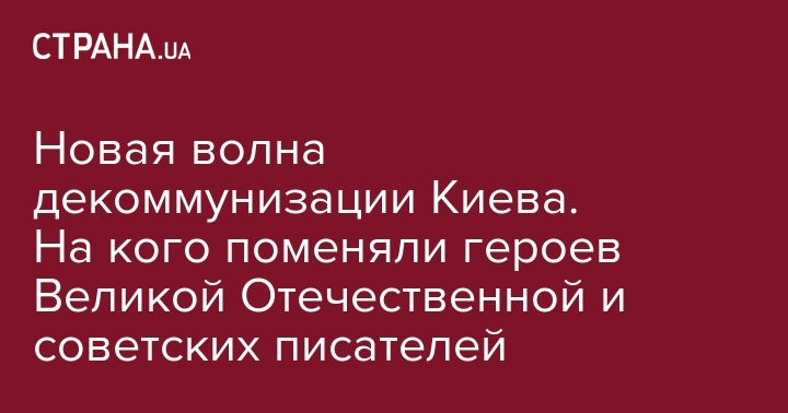 Новая волна декоммунизации Киева. На кого поменяли героев Великой Отечественной и советских писателей