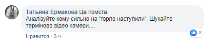 "Это месть. Анализируйте кому сильно на "горло наступили". Ищите срочно видeо камeры ..." - советует Татьяна Ермакова.