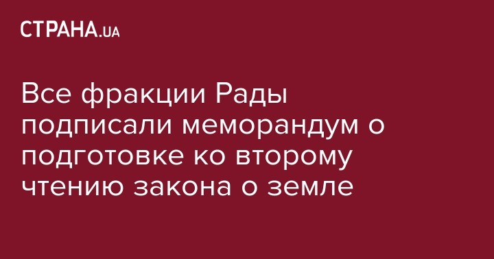 Председатель Верховной Рады Дмитрий Разумков заявил, что в пятницу, 20 декабря, все депутатские фракции и группы в парламенте подписали меморандум о совместной подготовке ко второму чтению законопроекта №2178-10 "Об обороте земель сельскохозяйственного назначения".