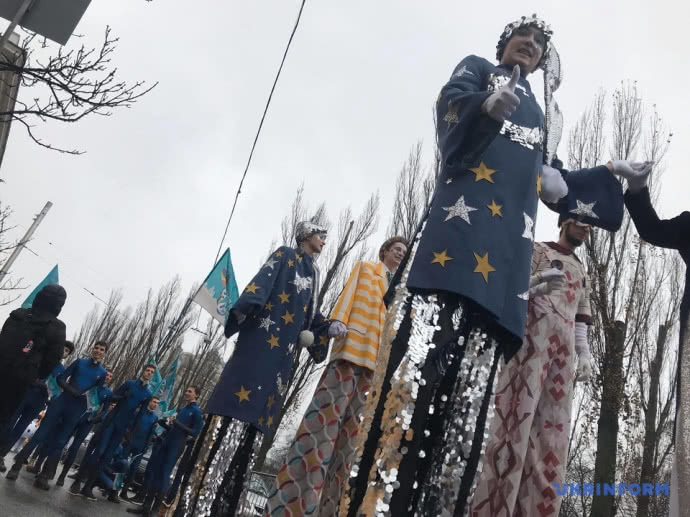 Сегодня, 22 декабря, в столице проходит парад Borjomi New Year Parade, в рамках которого проходит костюмированное шествие. Об этом сообщает "Укринформ".