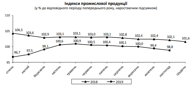По данным статистического ведомства, за январь-ноябрь зафиксировано падение промпроизводства на 1,2%.