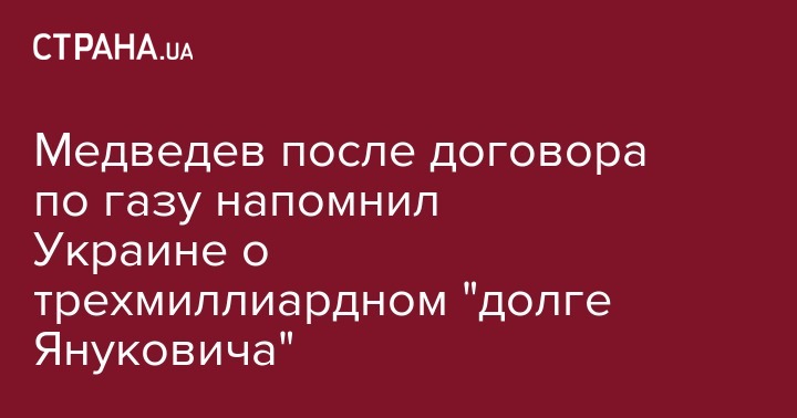 Он добавил, что согласно протоколу, "Газпром" должен будет обеспечить исполнение решения Стокгольмского арбитража. "Бессмысленно сейчас анализировать, каким образом принимались те или иные судебные решения, хотя совершенно очевидно, что при их принятии не обошлось без политики. Но мы исходим из того, что его принял компетентный суд и поэтому оно подлежит исполнению. Надеюсь, что и другие решения иностранных судов, истцом в которых выступает Российская Федерация, прежде всего – по спору, касающемуся возврата государственного кредита, выданного государству Украина, будут надлежащим образом исполнены. Поручил коллегам, которые ведут эту тему, следить за этим процессом", - резюмировал Медведев.