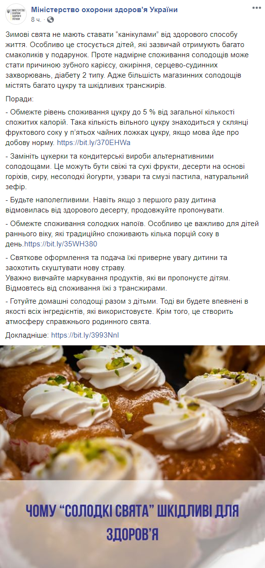 "Особенно это касается детей, которые обычно получают много вкусностей в подарок. Однако чрезмерное потребление сладостей может стать причиной зубного кариеса, ожирения, сердечно-сосудистых заболеваний, диабета 2 типа. Ведь большинство магазинных сладостей содержат много сахара и вредных трансжиров", - предупредили в министерстве.