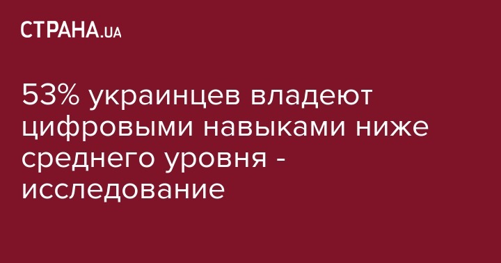По итогу сообщается, что 37,9% украинцев в возрасте 18-70 лет имеют цифровые навыки ниже среднего. Еще 15,1% вообще не владеют ими. Таким образом 53% украинцев находится ниже отметки "средний уровень" по методологии оценки Европейской комиссии.