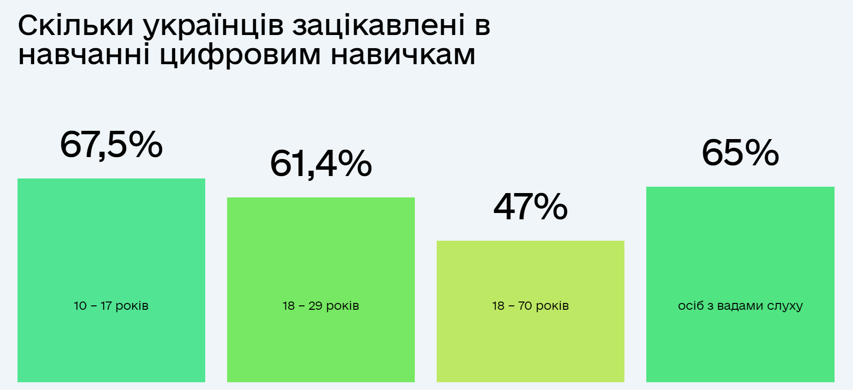 "Мы получили ответ на то, что украинцы понимают под "цифровой грамотностью" и чувствуют ли они потребность в обучении цифровой грамотности. Это очень важная информация, которая позволит Министерству цифровой трансформации эффективно реализовать политику в сфере развития цифровых навыков граждан", - сказано в сообщении.